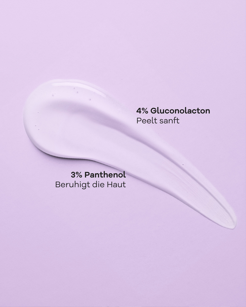 Abgestorbene Hautzellen werden sanft entfernt, die Hauterneuerung angekurbelt und die Hautstruktur sichtbar verbessert. Gleichzeitig wird die Haut beruhigt, mit Feuchtigkeit versorgt und samtweich gepflegt.