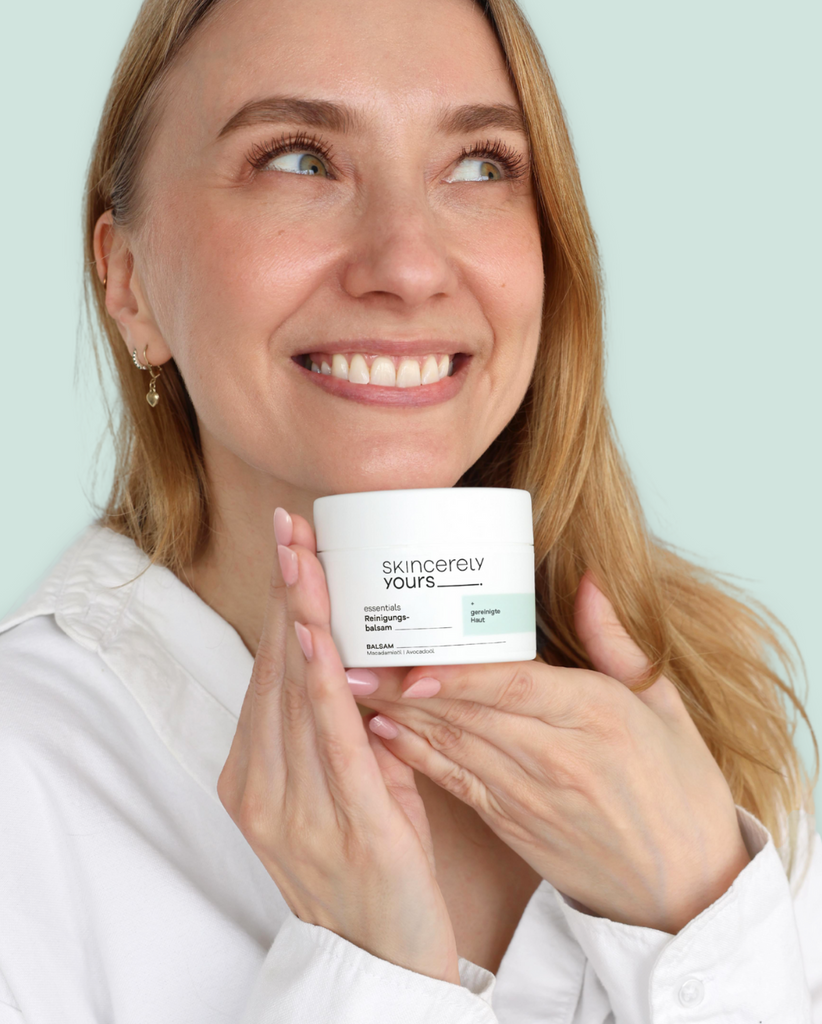 Unser Reinigungsbalsam kann einzeln und/oder auch als 1. Step beim Double Cleansing verwendet werden. Nutze als 2. Step unsere Milde Reinigung und freu dich über eine porentief gereinigte Haut, die optimal auf die folgende Pflegeroutine vorbereitet ist.